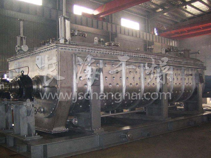 a.設(shè)備結(jié)構(gòu)緊湊,裝置占地面積小。由設(shè)備結(jié)構(gòu)可知,干燥所需熱量主要是由排列于空心軸上的空心槳葉壁面提供,而夾套壁面的傳熱量只占少部分。所以單位體積設(shè)備的傳熱面大,可節(jié)省設(shè)備占地面積,減少基建投資。