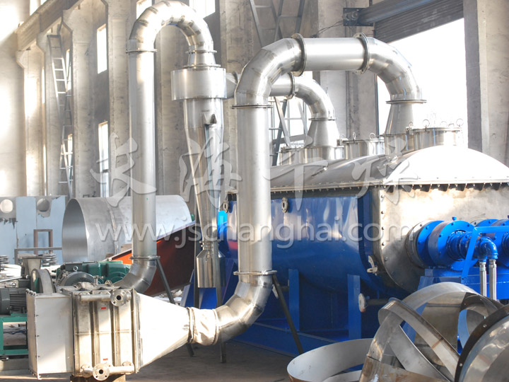 a.設(shè)備結(jié)構(gòu)緊湊,裝置占地面積小。由設(shè)備結(jié)構(gòu)可知,干燥所需熱量主要是由排列于空心軸上的空心槳葉壁面提供,而夾套壁面的傳熱量只占少部分。所以單位體積設(shè)備的傳熱面大,可節(jié)省設(shè)備占地面積,減少基建投資。